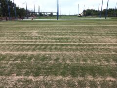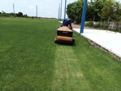 - นำลูกกลิ้งมาบดทับบนหญ้าเพื่อทำให้หญ้าเรียบเสมอเท่าๆกัน